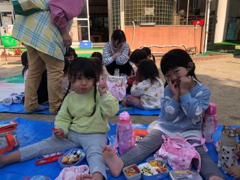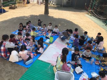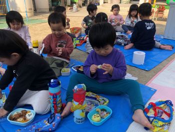 こども園に帰ってきて、おまちかねのお弁当を食べました。