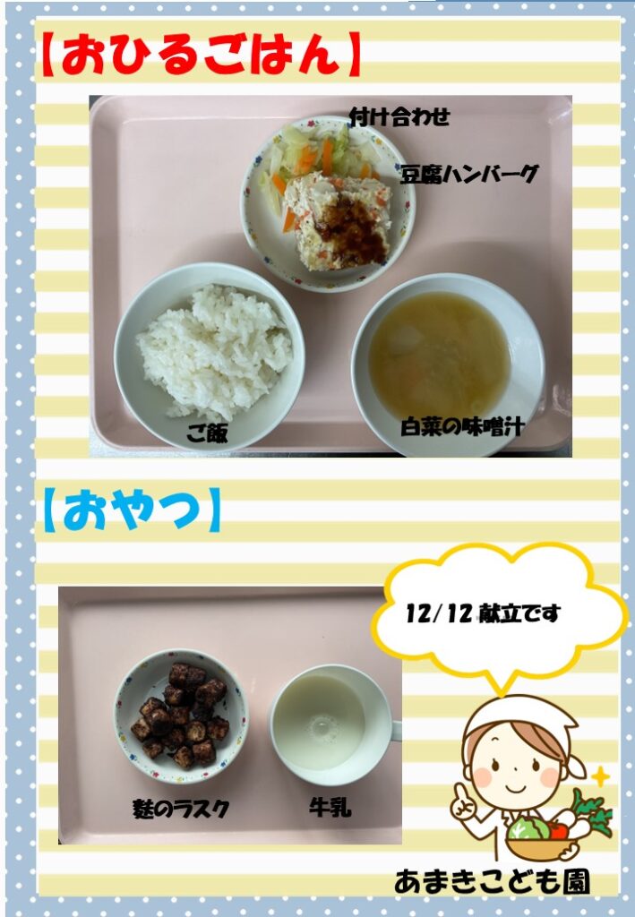 令和7年12月12日の献立です。