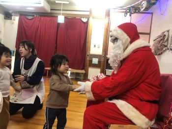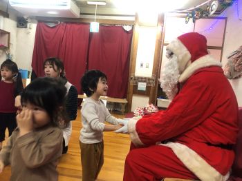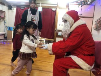 質問をしたり、握手をしたり、歌のプレゼントをしたりとサンタさんに触れ合う事が出来てニコニコの子ども達でした!