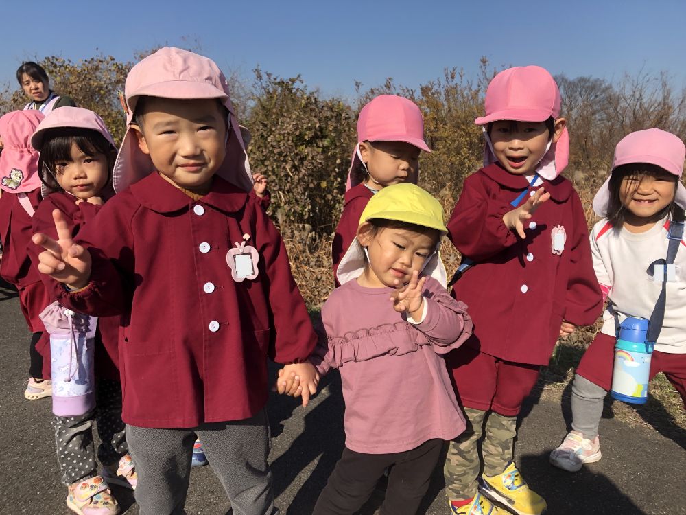 別の日には、自分よりちいさいお友だち(この日はたんぽぽ組【1歳児】)とお散歩に行きましたよ。