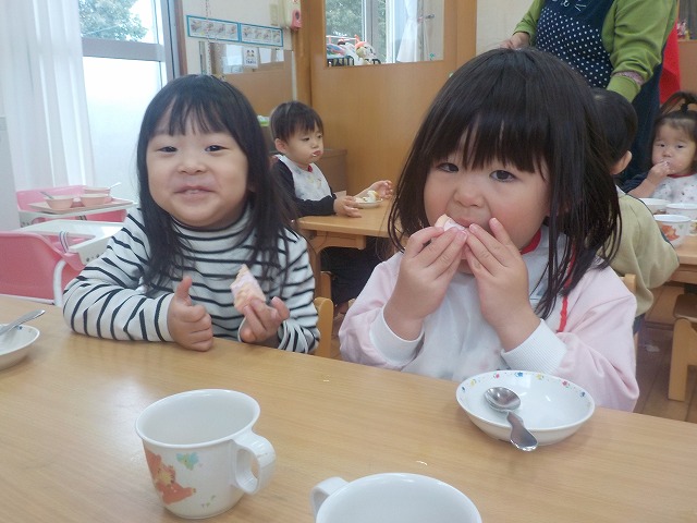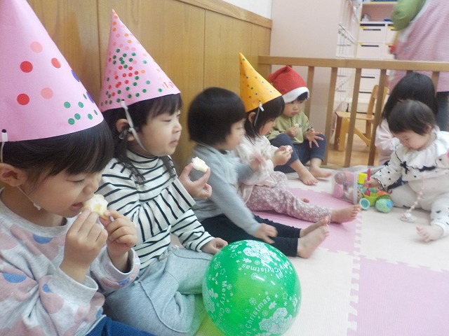 お部屋に戻ってからはサンタさんがくれたおやつをみんなで食べてにっこり☆彡
