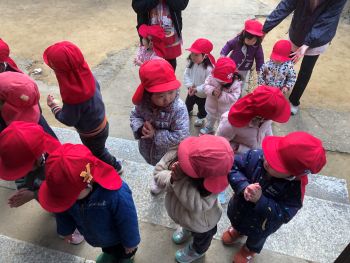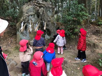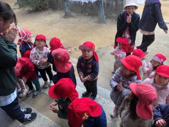 お賽銭は先生がしましたが、先生の真似っこをしてみんなで「かっこいいもも組になれますように…✨」とお願いしました🎵