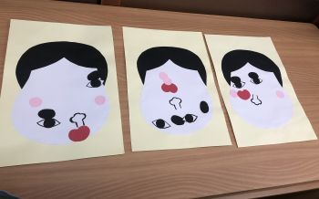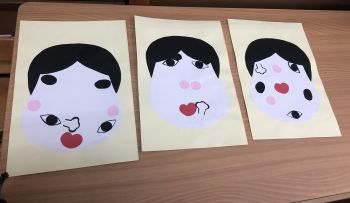 色んな顔が完成して、思わず子どもたちも「クスッ」と笑ったり、「これ、〇〇がしたの!」や「〇〇のだ!」と自分の貼った顔が分かって教えてくれたりとビックリする事もありました。