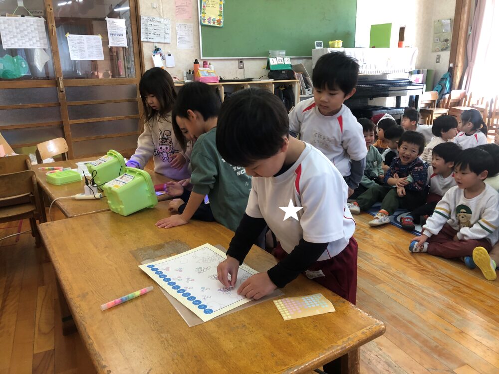 話を聞いた後は、実際に手洗いスタートです✨まずは手に分かりやすくクレヨンで色を付けました!