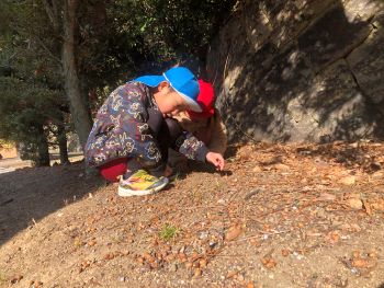 どんぐりもたくさん落ちていて「どんぐり~♬」と一生懸命拾う姿も…。
