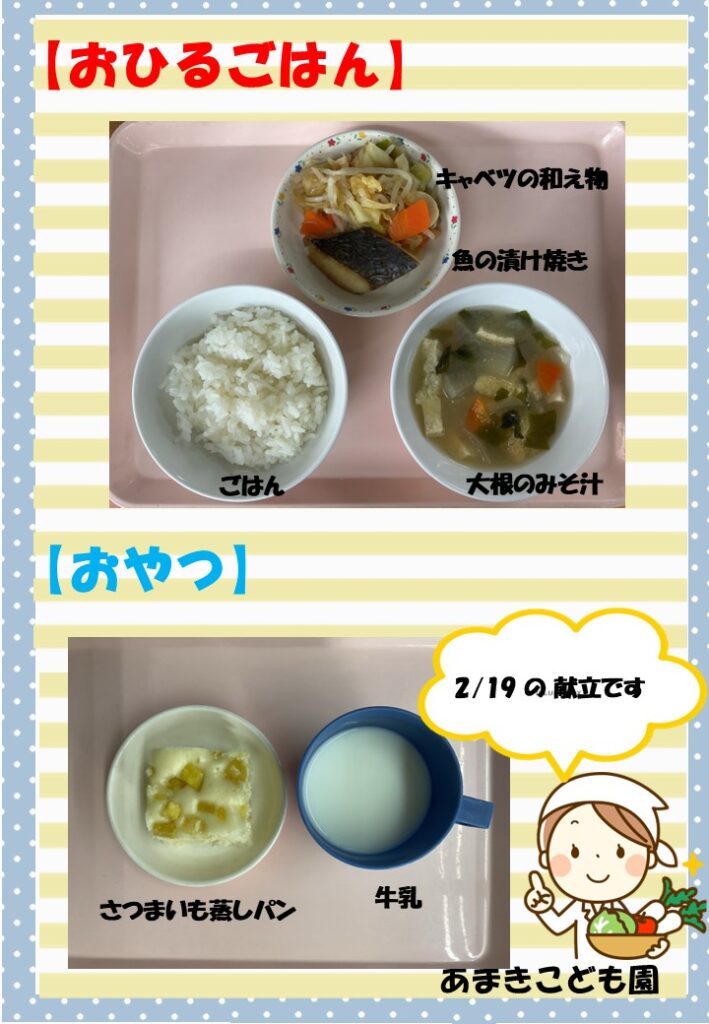 令和8年2月19日の献立です。