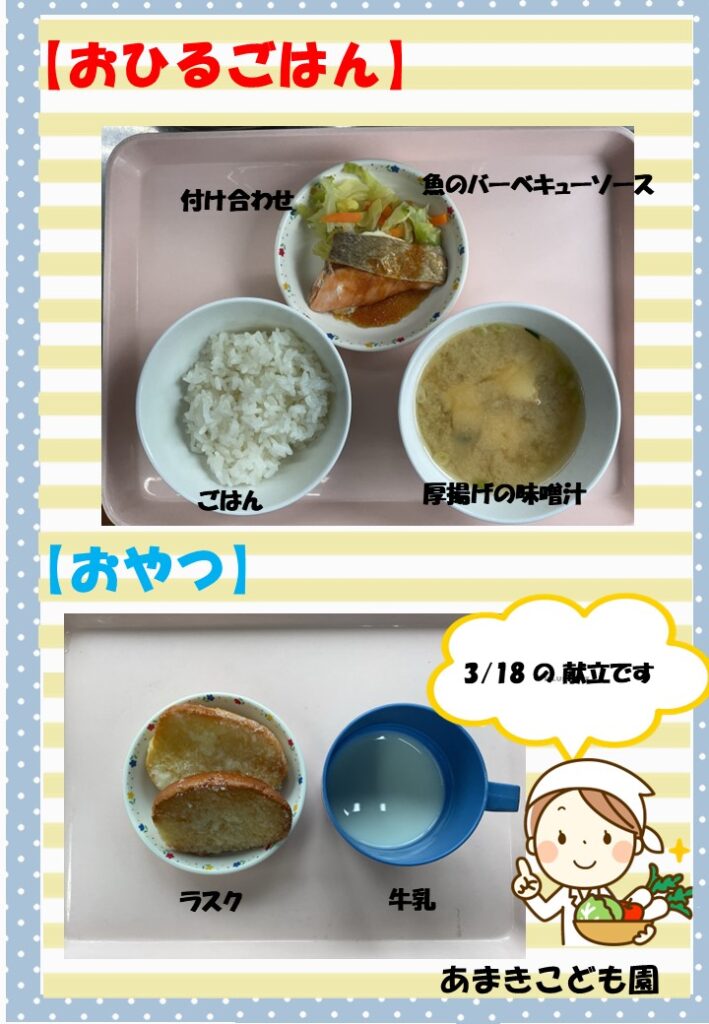 令和8年3月18日の献立です。