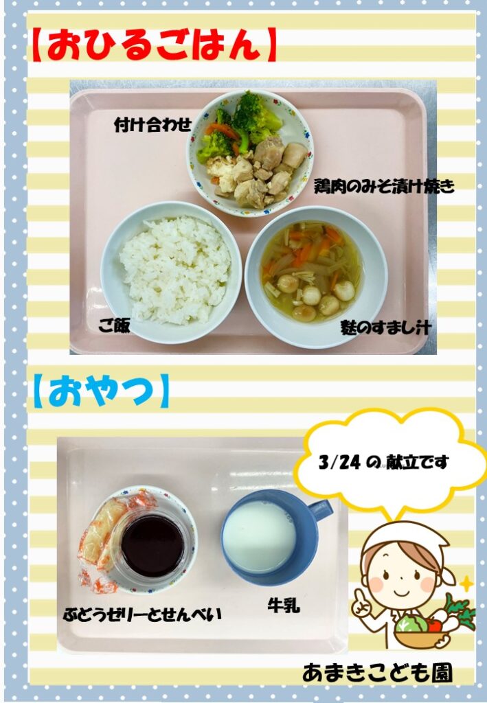 令和8年3月24日の献立です。