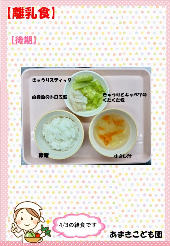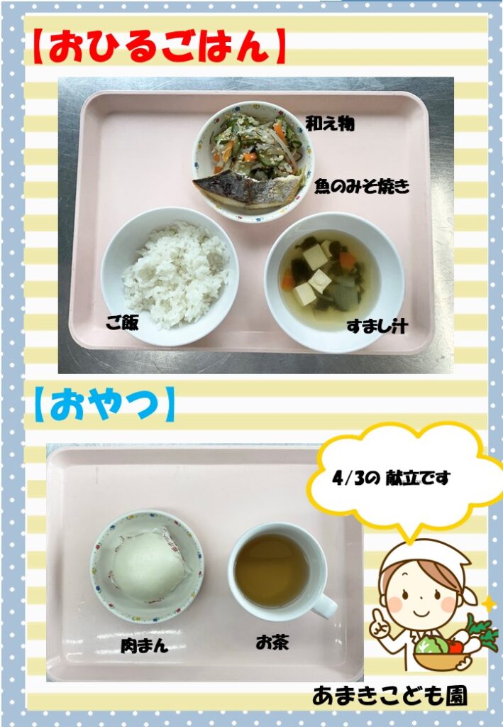 令和8年4月3日の献立です。