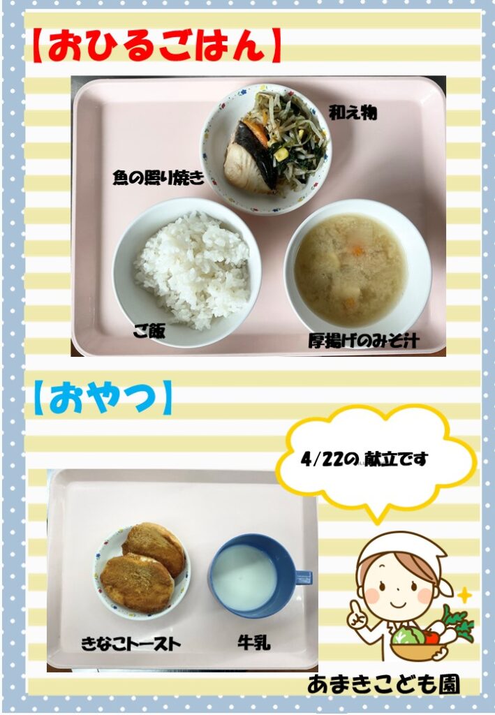 令和8年4月22日の献立です。