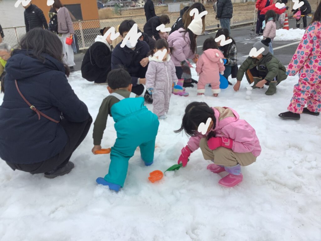 雪に色を付けたり、雪だるまを作ったり、ソリあそびや的あてなどしました。