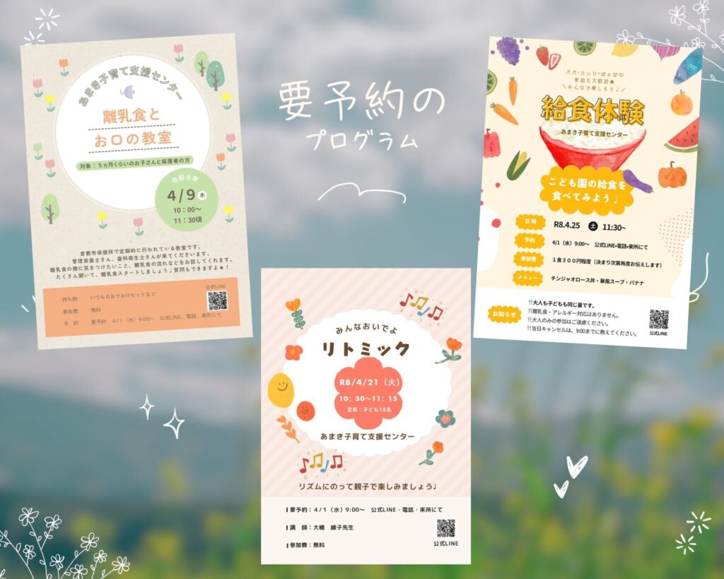 お知らせ4月の要予約のプログラムは