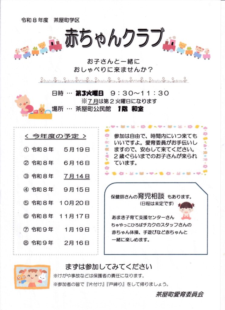 お知らせ茶屋町学区 赤ちゃんクラブ