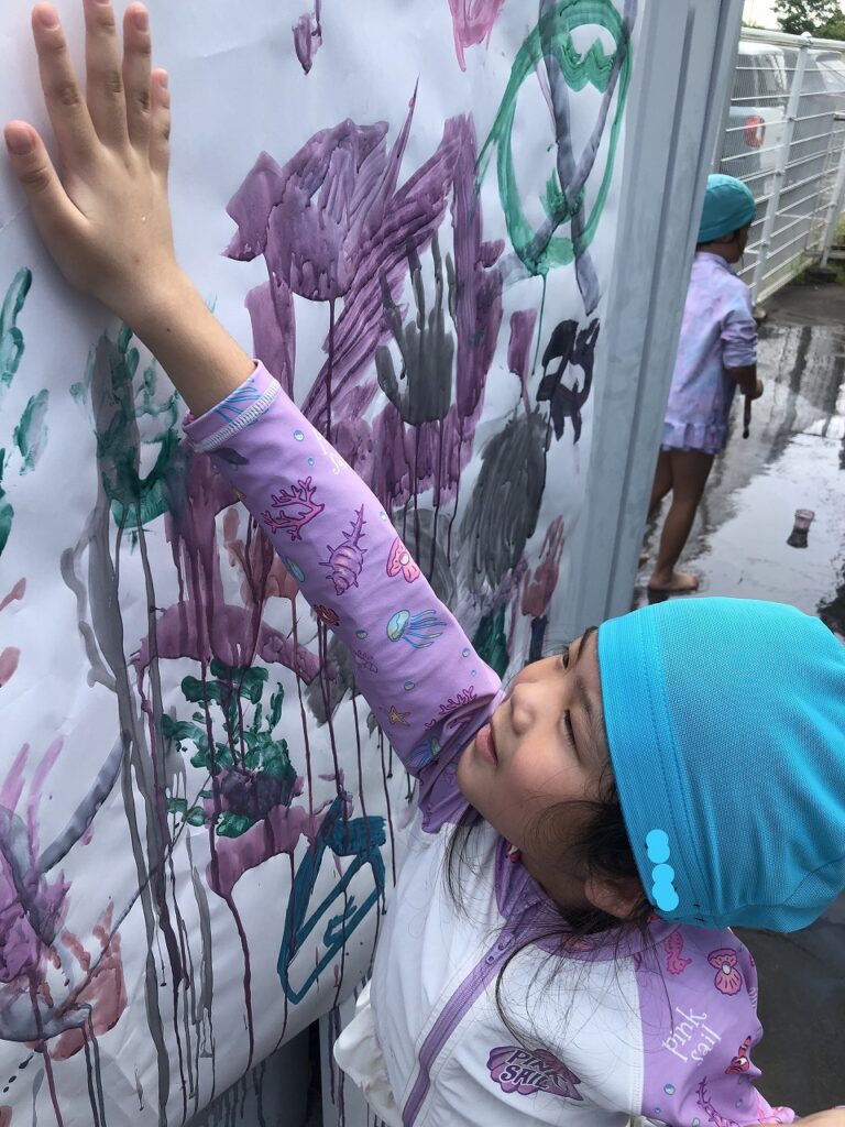 遊んだ後は泡を使って水着や体についた絵具を落として綺麗サッパリ✨「あ~楽しかった!」と大満足でした。もうすぐで水遊びもおしまい・・・。最後までいろんな遊びを満喫していきたいと思います😁