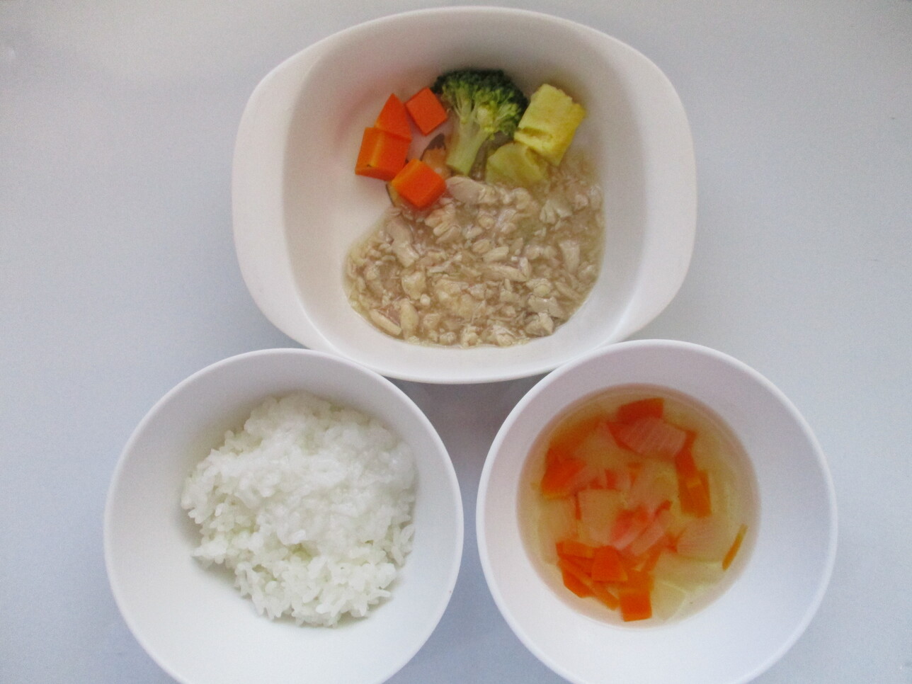 ・軟飯 ・鶏と野菜 ・オニオンスープ
