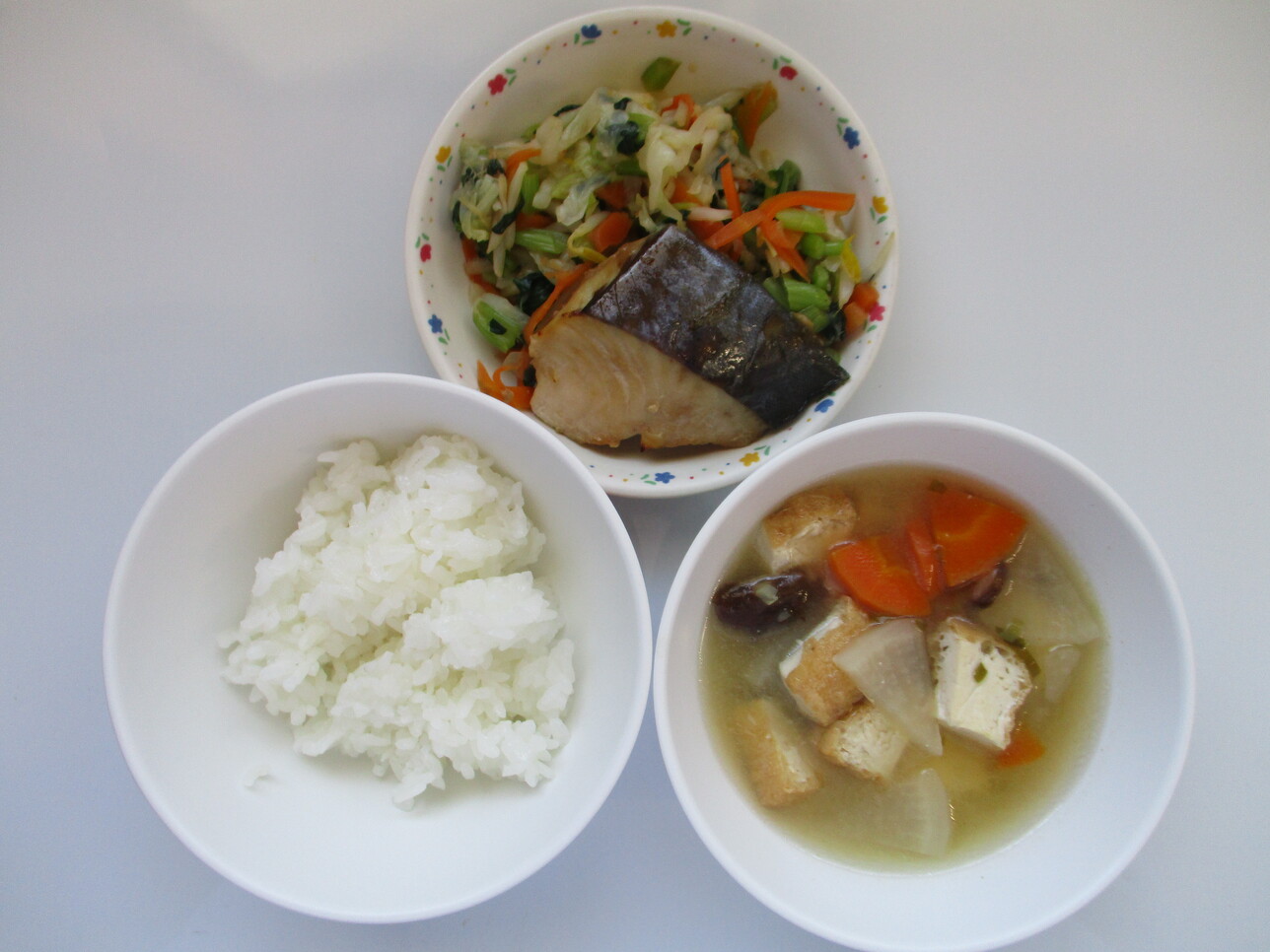 ・ごはん ・魚の照り焼き ・酢の物 ・大根の味噌汁
