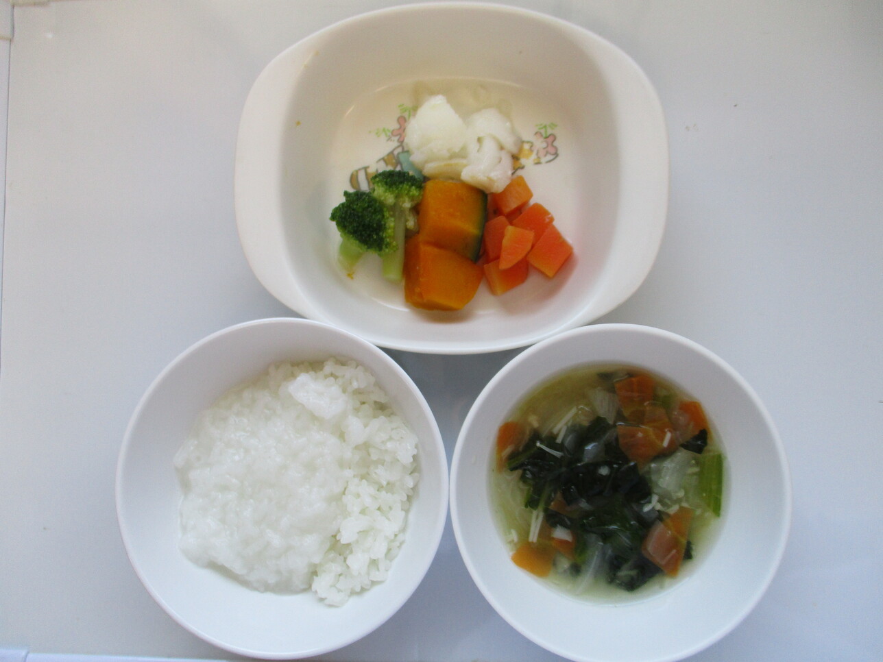 ・軟飯 ・魚と野菜 ・たまねぎのみそ汁