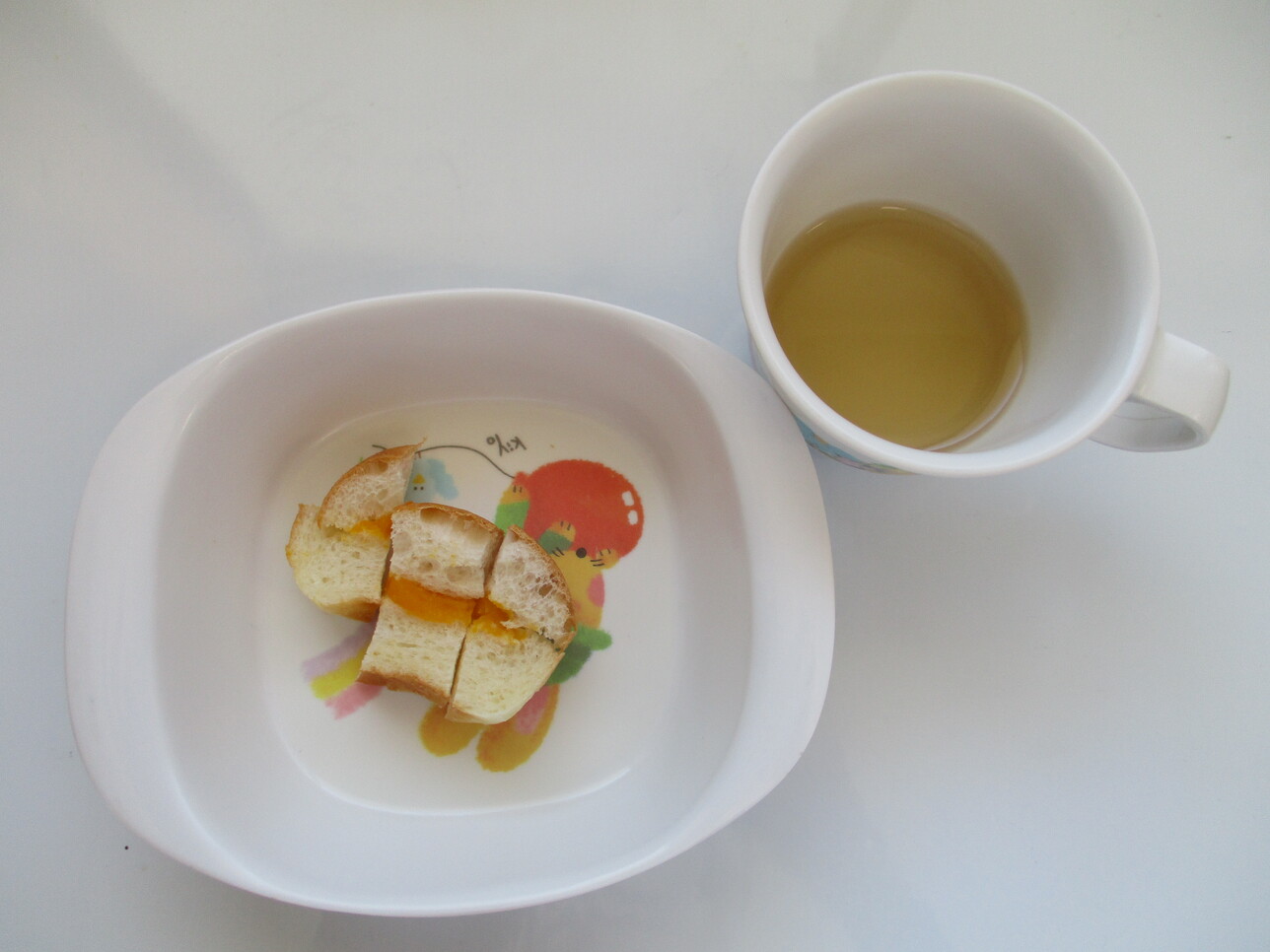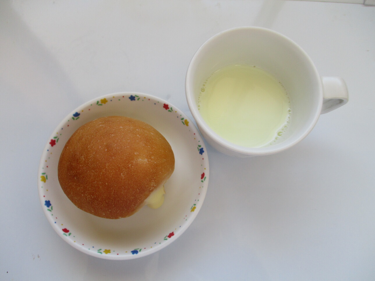 クリームパンといえば「グローブ型」!これは発酵段階で中が空洞にならないよう空気抜きとして切れ目を入れた結果だそう。今日のおやつのクリームパンは、丸い形です♪