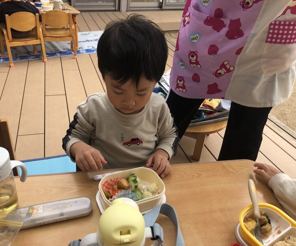 園に戻ってからはお弁当タイム♡ふたを開けた瞬間ニコニコな子どもたち♪嬉しそうにパクパク食べていましたよ。