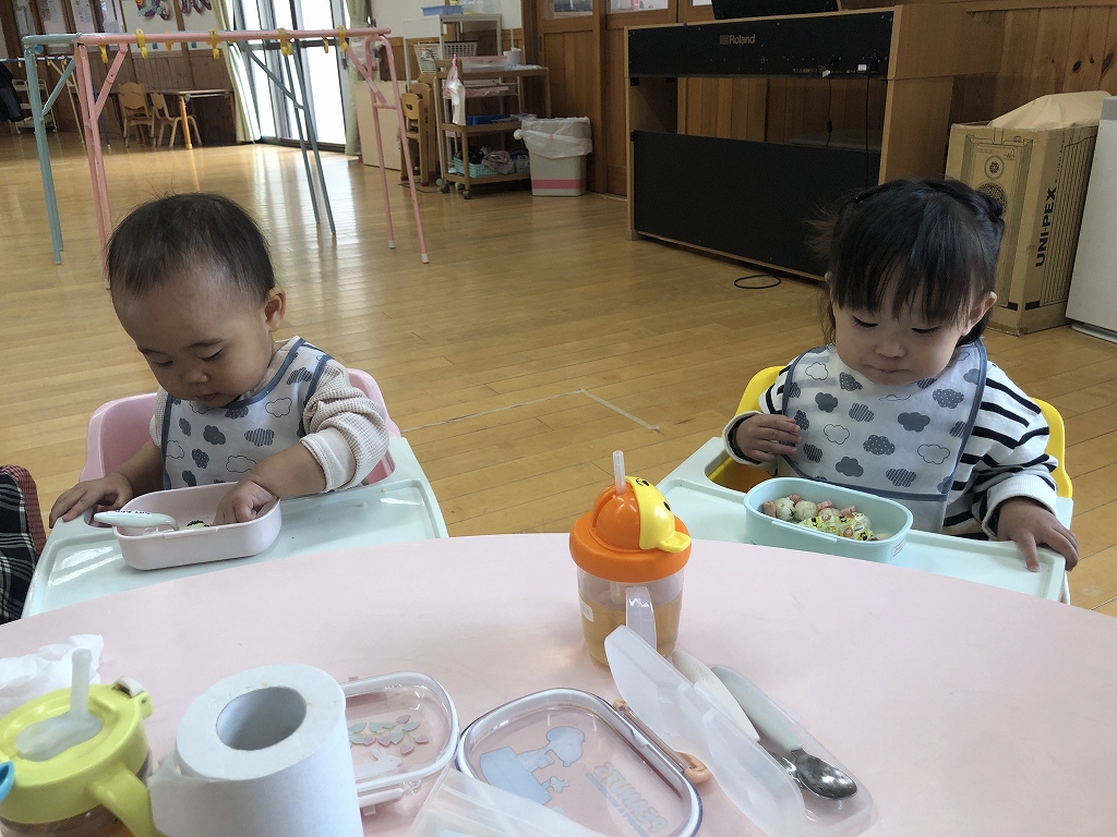 「おいしいね」と声をかけると“うんうん”と頷いてくれたり、夢中で食べてりすさんのほっぺのようになったりと、にこにこ笑顔で完食する姿に、ほっこりするひとときでした。