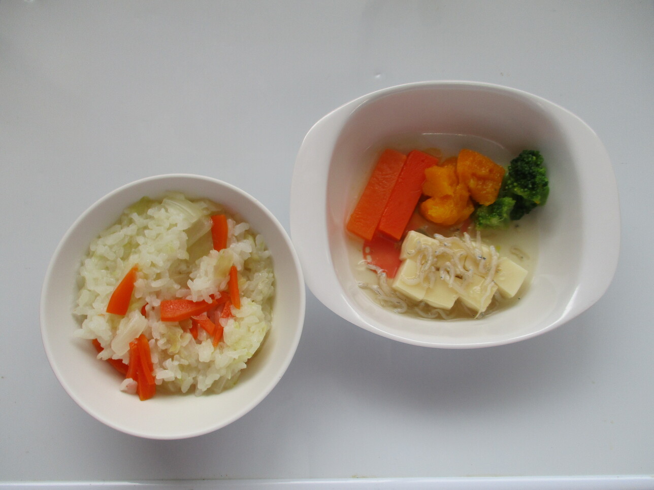 ・ごはん ・柳川風 ・大豆とわかめの酢の物 ・オレンジ