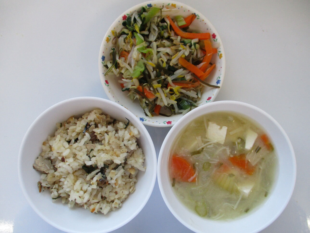 ・さんまの炊き込みごはん ・レモン酢和え ・えのきたけのみそ汁