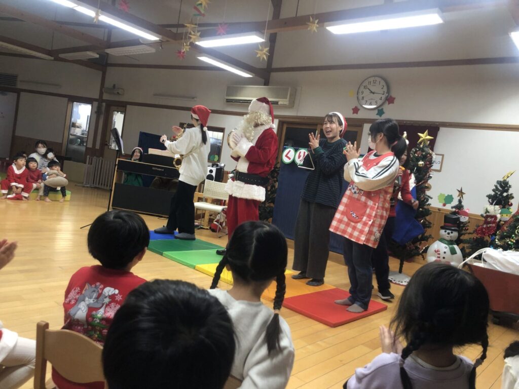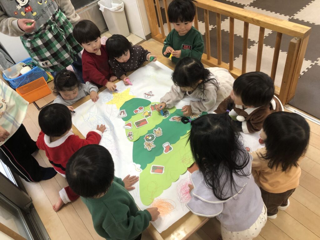 保育室から今日は待ちに待ったクリスマス会。「サンタさんくるかな?」「プレゼントもってきてくれるかな?」とドキドキ、ワクワクしていた子どもたち♡