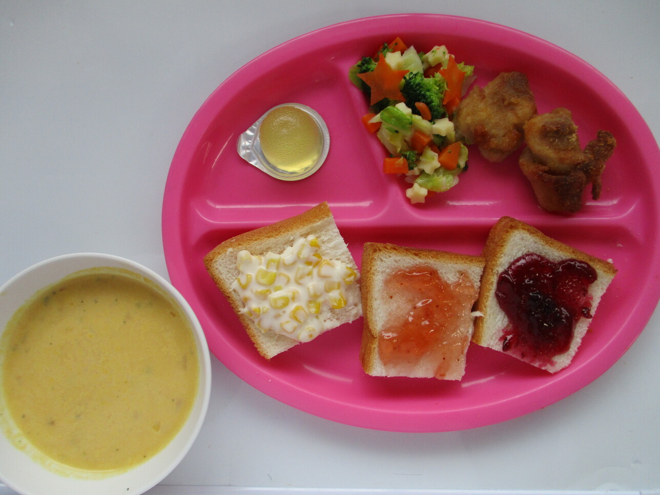 ・パンバイキング ・フライドチキン風 ・スターサラダ ・ポタージュスープ ・一口ゼリー