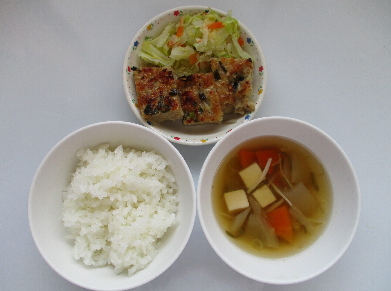 ・ごはん ・松風焼き風 ・付け合せ ・えのきたけのすまし汁