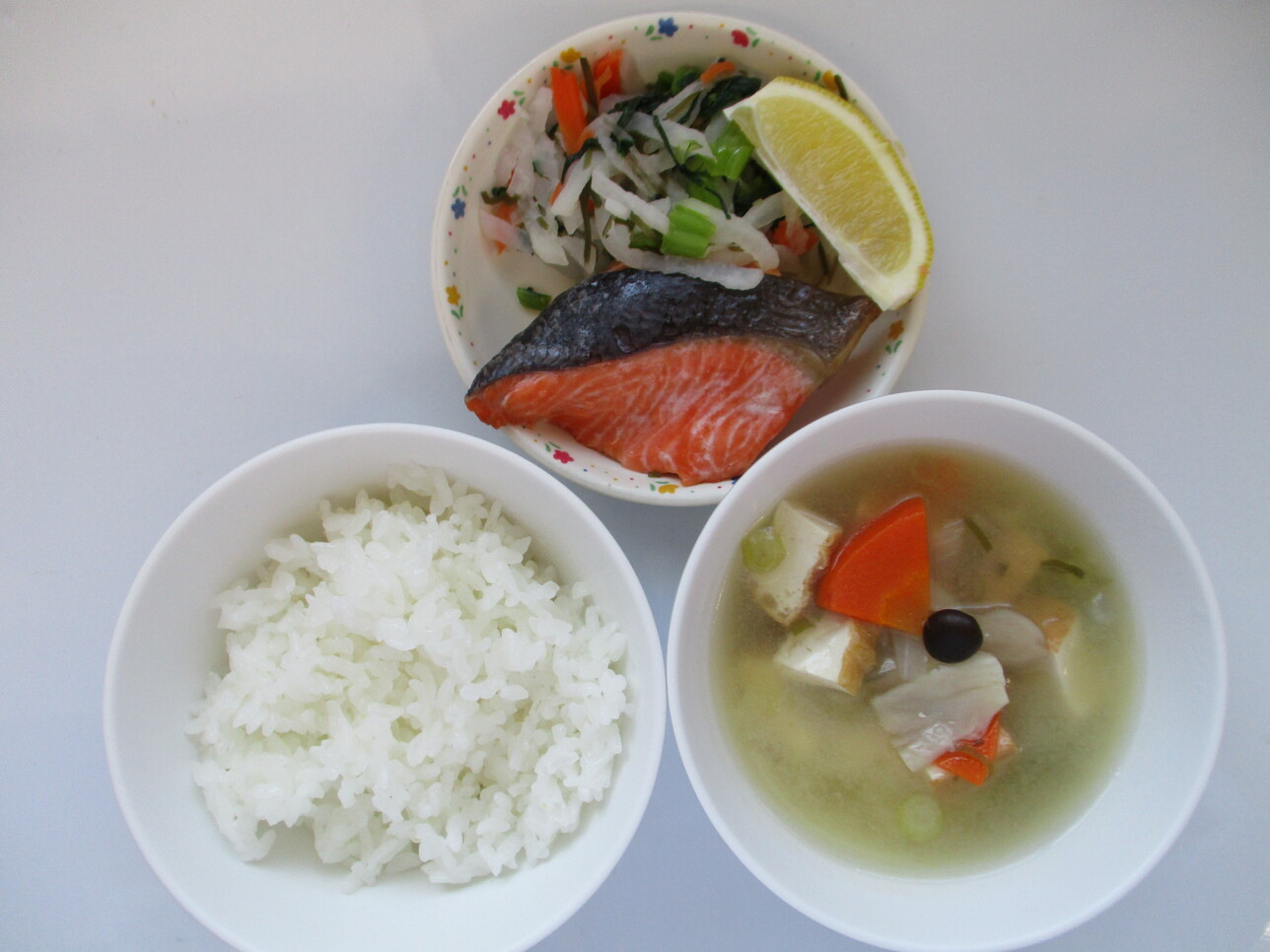 ・ごはん ・魚の塩焼き ・なます ・厚揚げのみそ汁