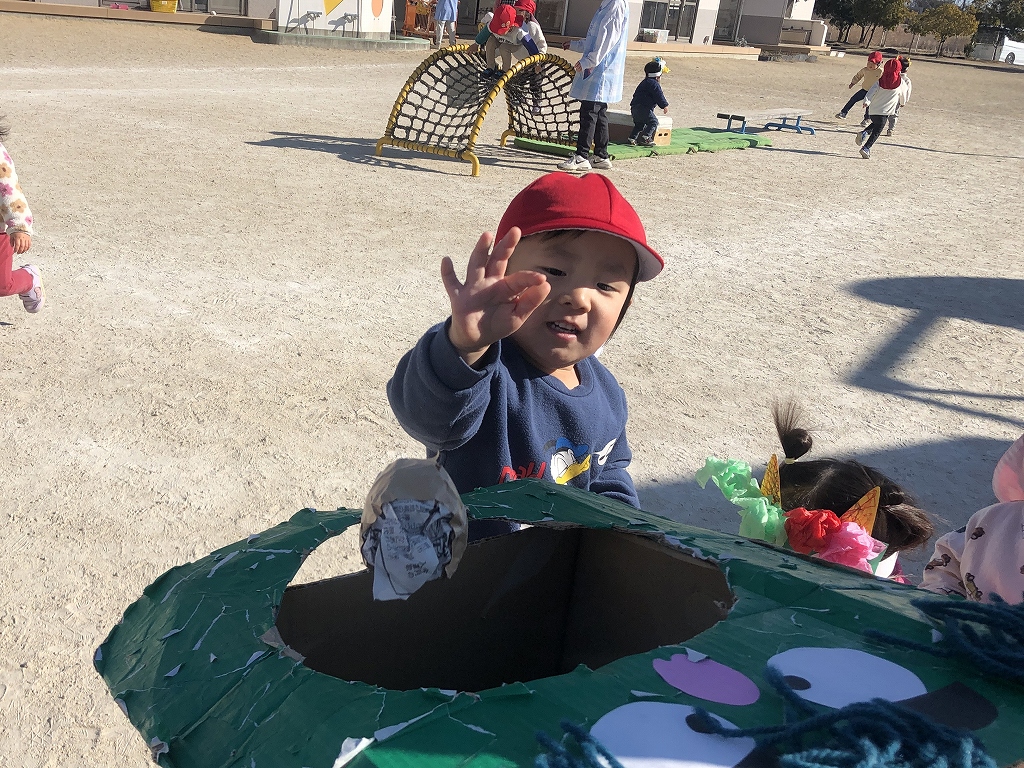 うさぎ組さんを中心に「おにはーそと!」と元気いっぱい豆を投げて、みんなで力を合わせて鬼を追い払うことができました。 鬼が逃げていった後には、笑顔いっぱいで「やったー!」と喜ぶ声が響きましたよ♡