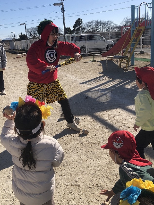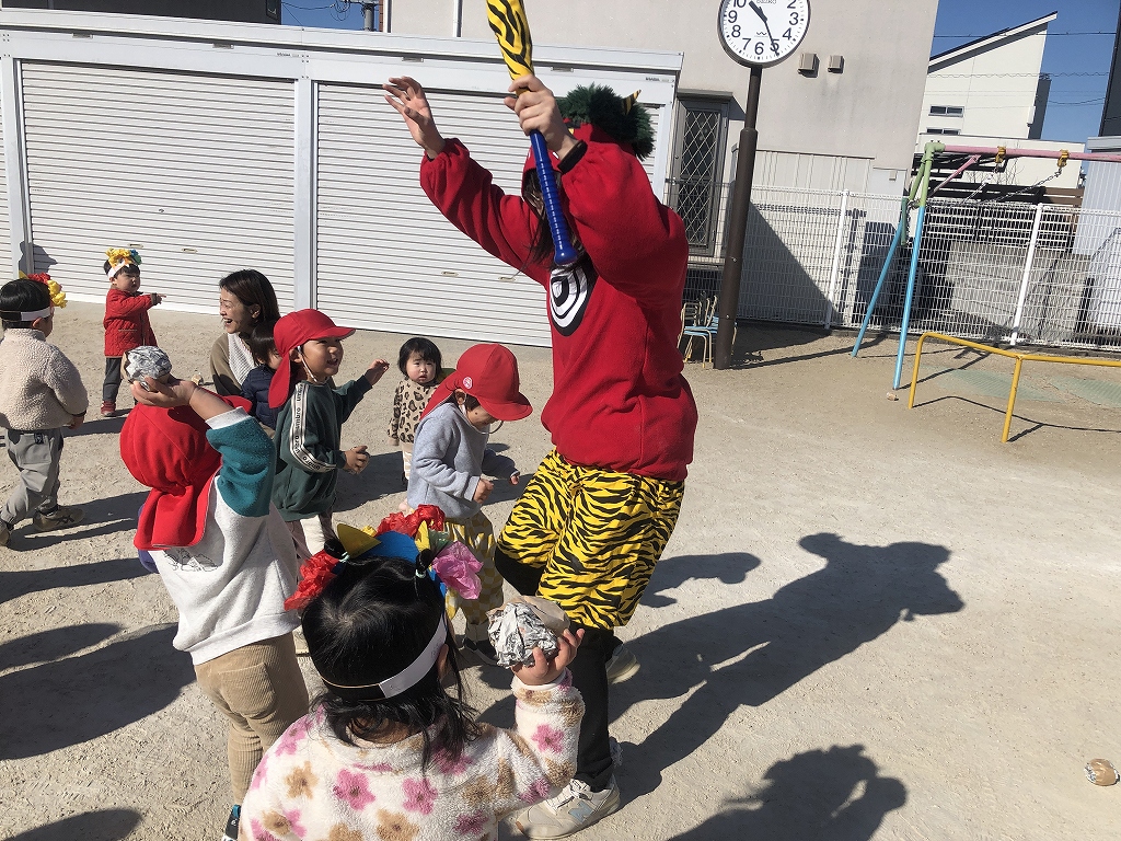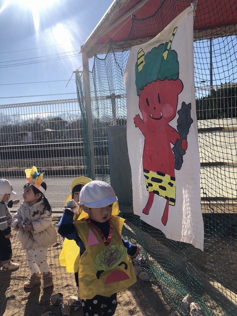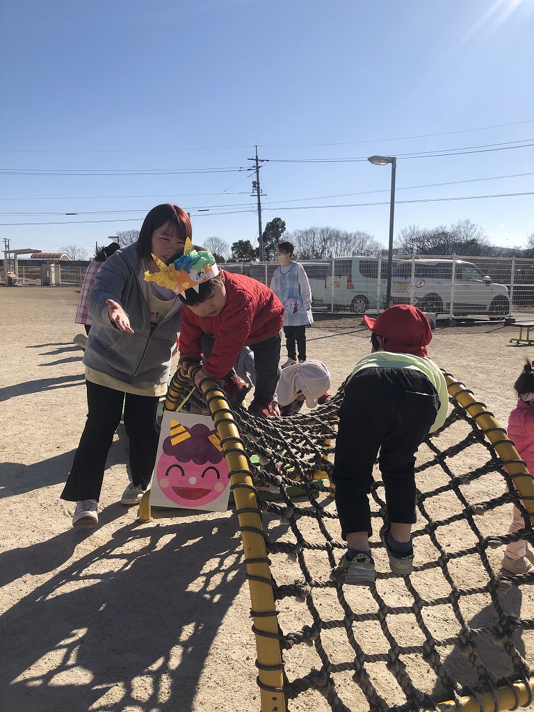 その後は、園庭で鬼のサーキットや豆まきをして遊びましたよ♪