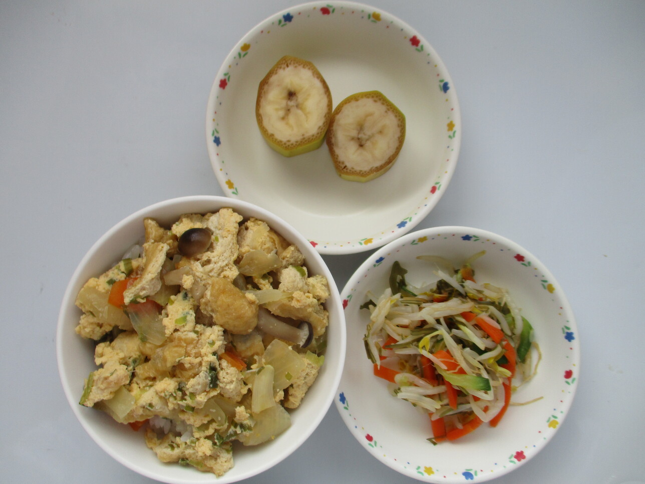 ・子ぎつね丼 ・レモン酢和え ・バナナ