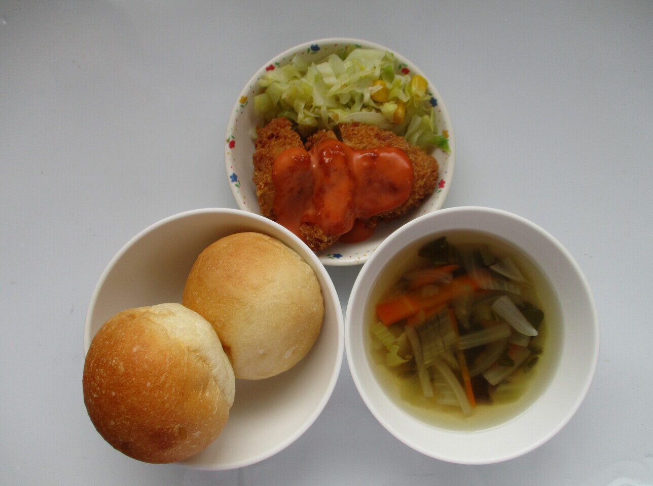 ・パン ・魚のオーロラソース ・付け合せ ・野菜スープ