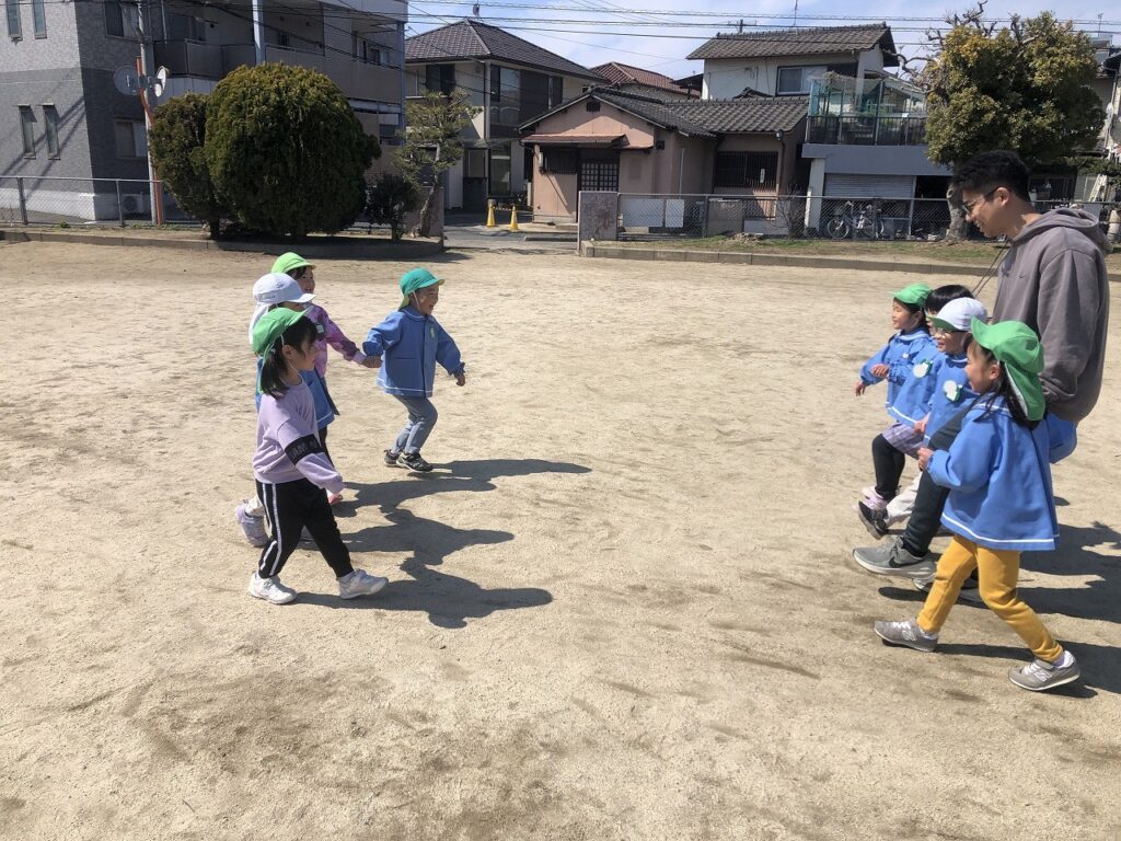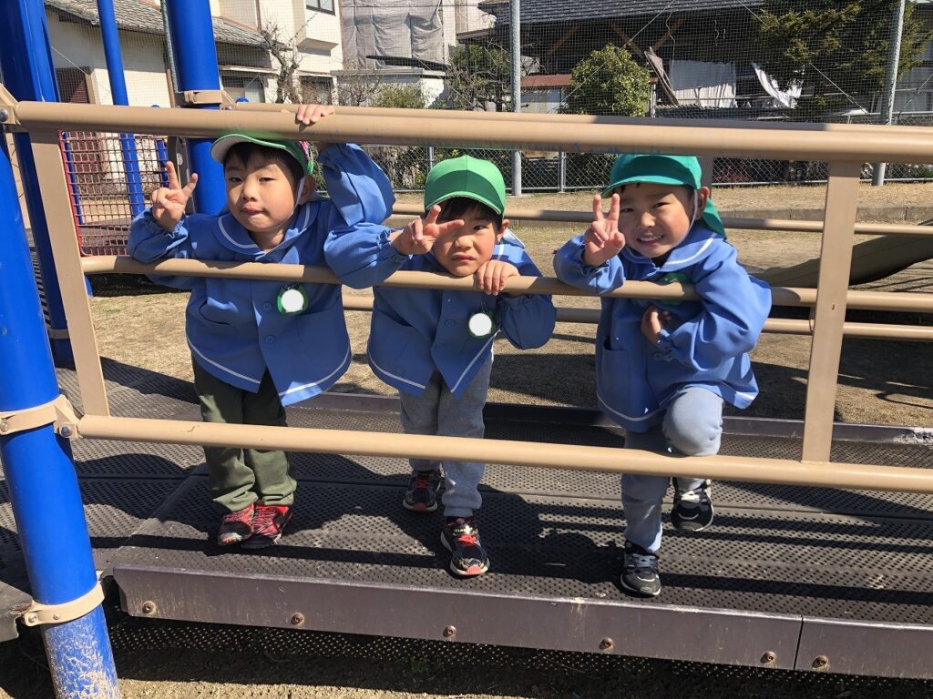 大きい遊具で遊んだり、広場でお友だちと誘い合って遊んだりと元気いっぱい楽しみました♪