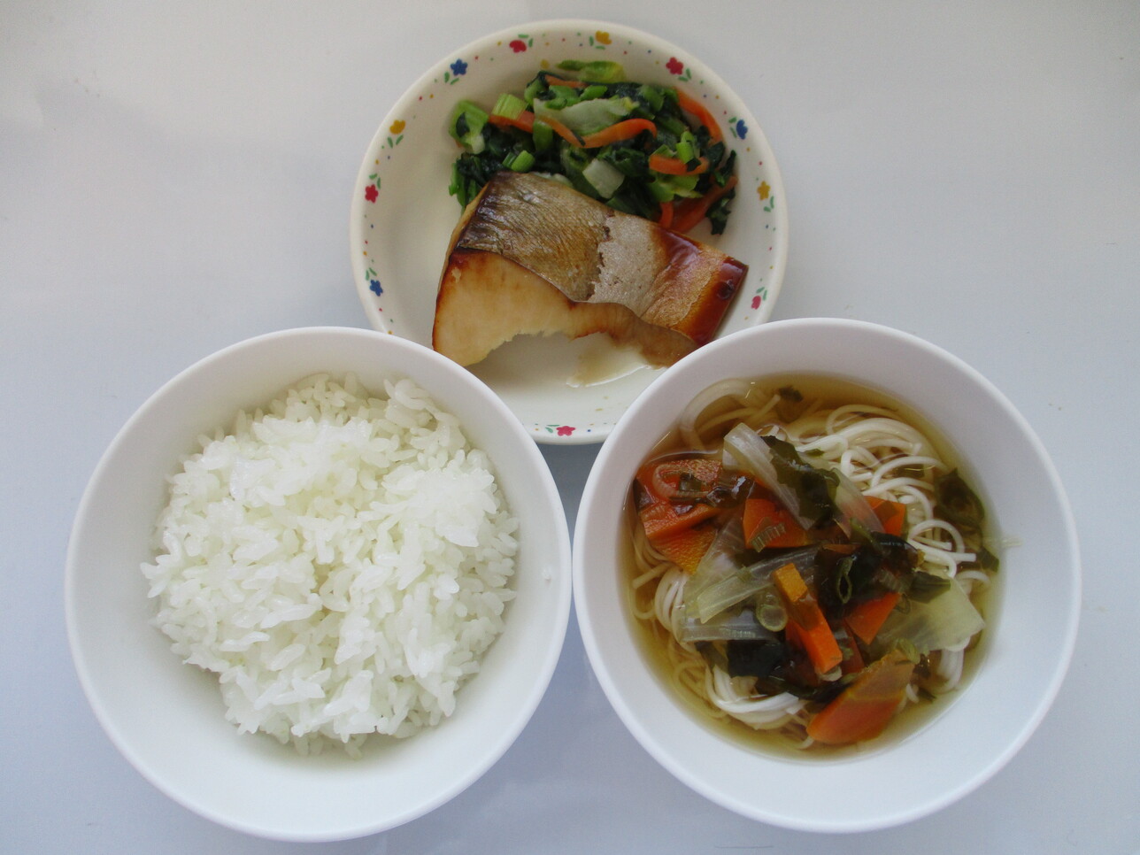 ・ごはん ・魚の照り焼き ・酢みそ和え ・そうめん汁