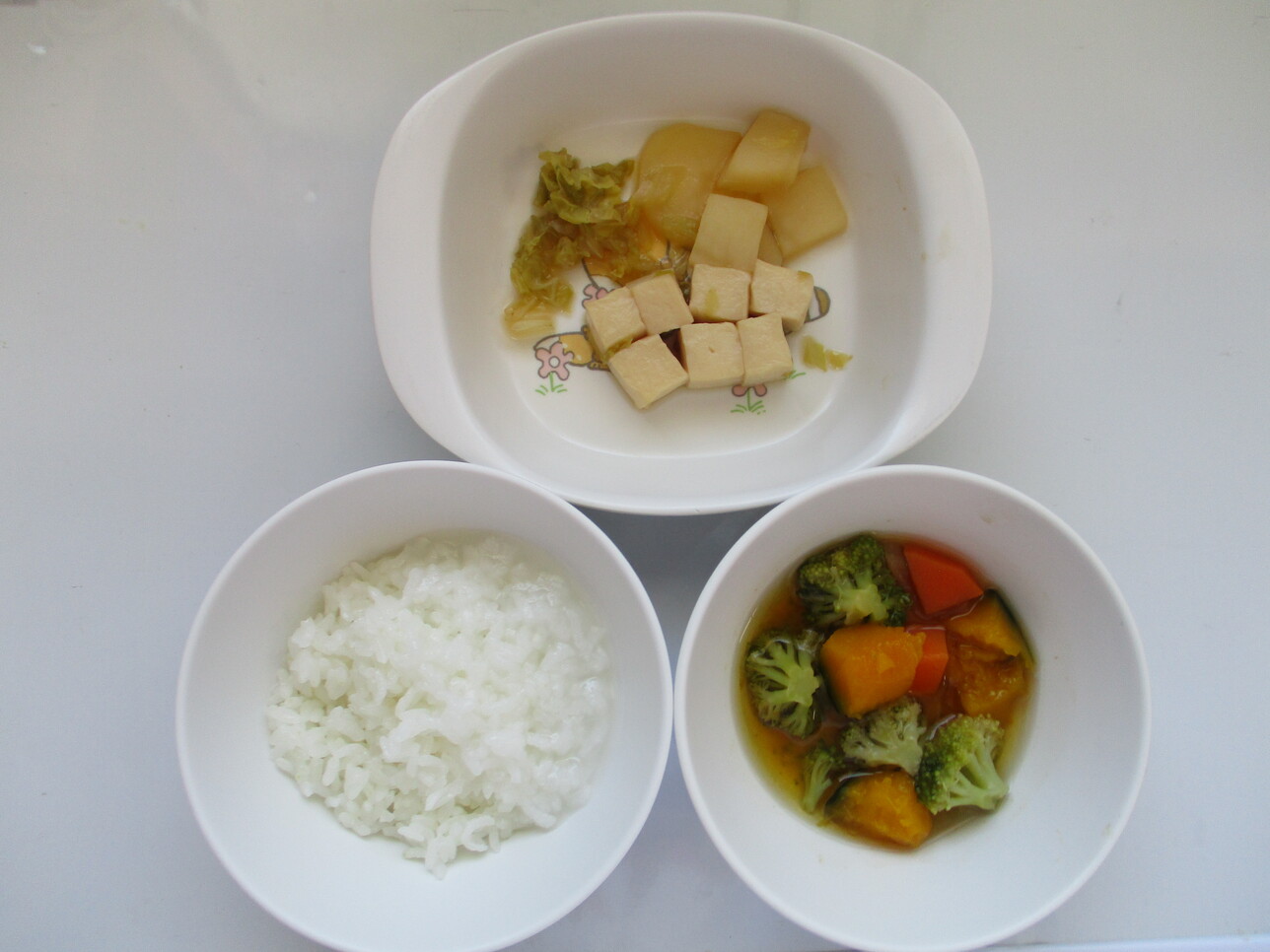 ・軟飯 ・豆腐と野菜 ・野菜スープ