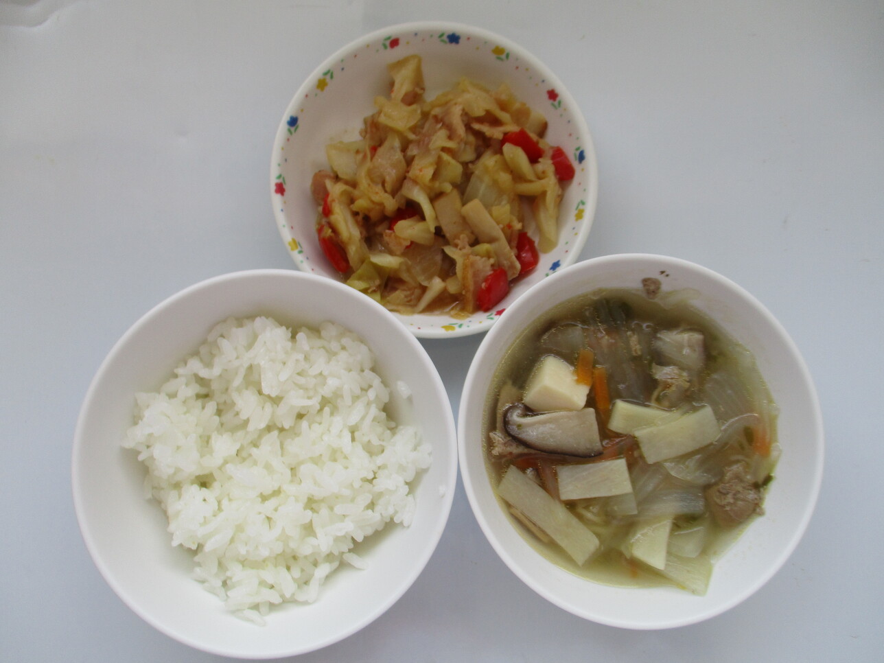 ・ごはん ・ベーコンと野菜のソテー ・三絲湯