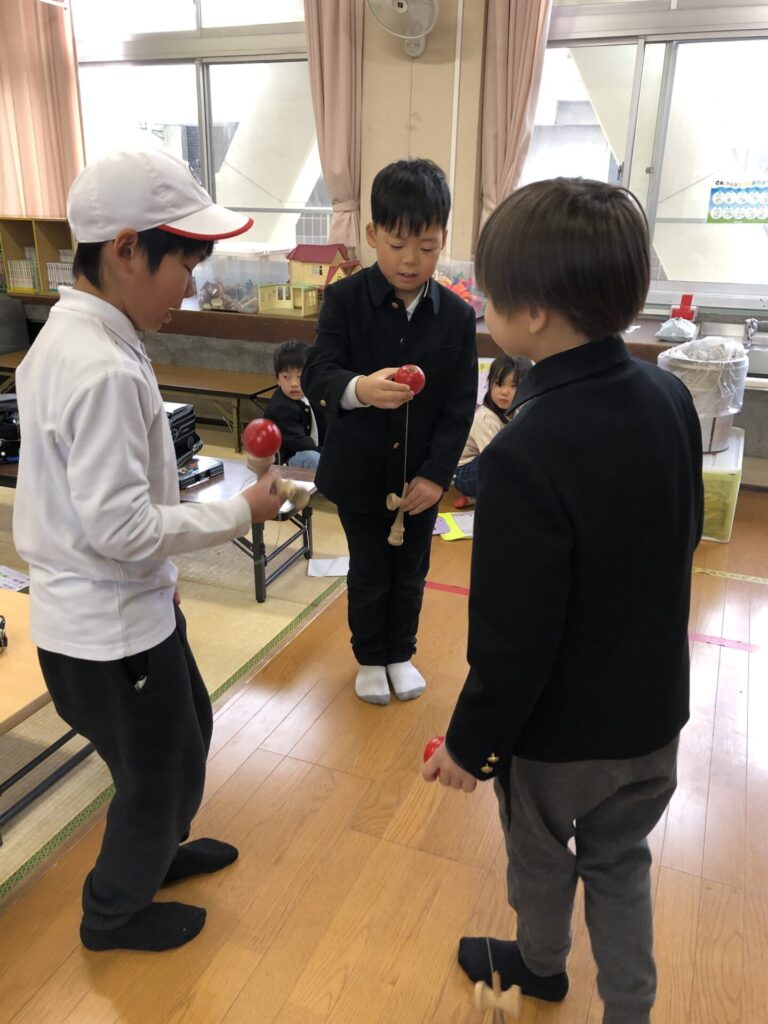 そこから、少しずつけん玉に興味を持つ子が増え、今では毎日けん玉をしています。