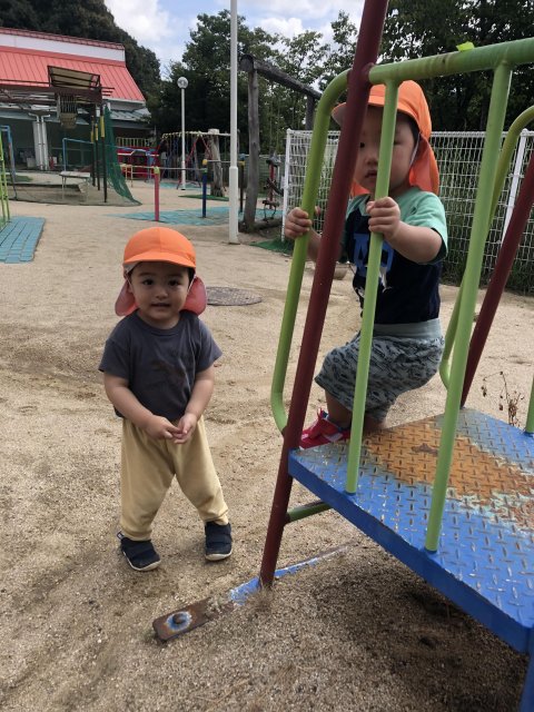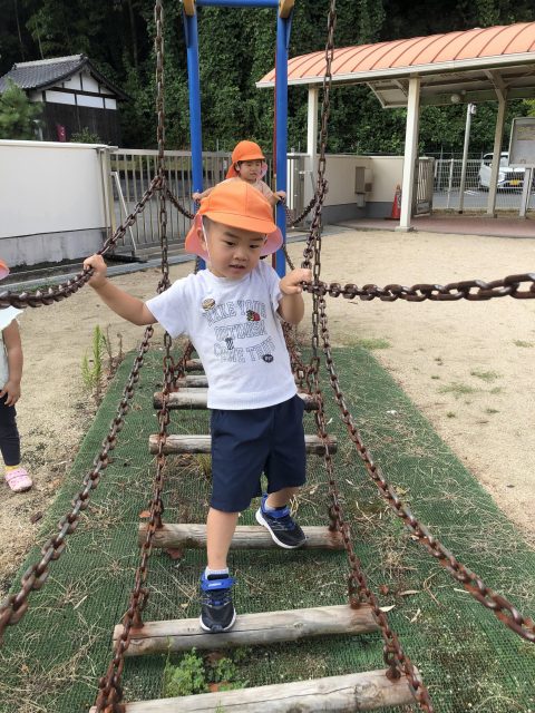 園庭の遊具で遊ぶのは、みーんなだいすきです♡”