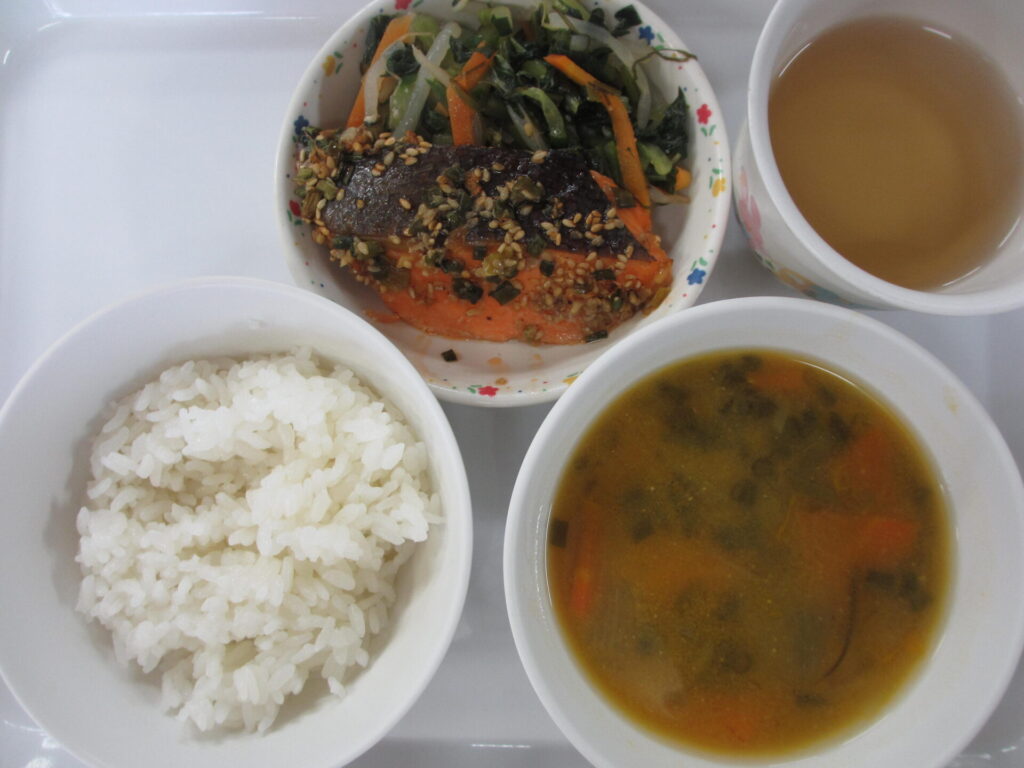 給食室から今日は魚の香味焼きでした🐟
