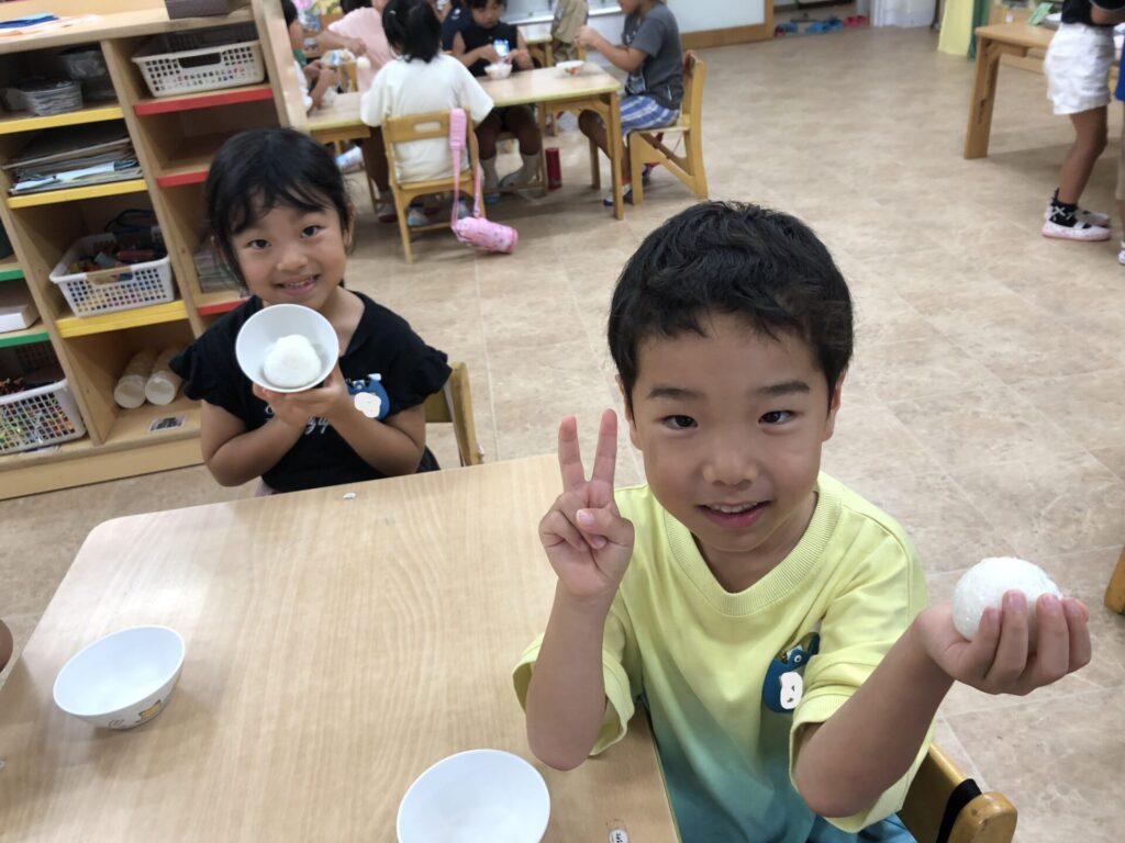 自分たちで握ったおにぎりは特別に美味しいね!!