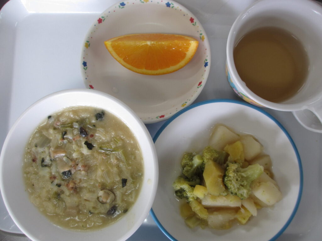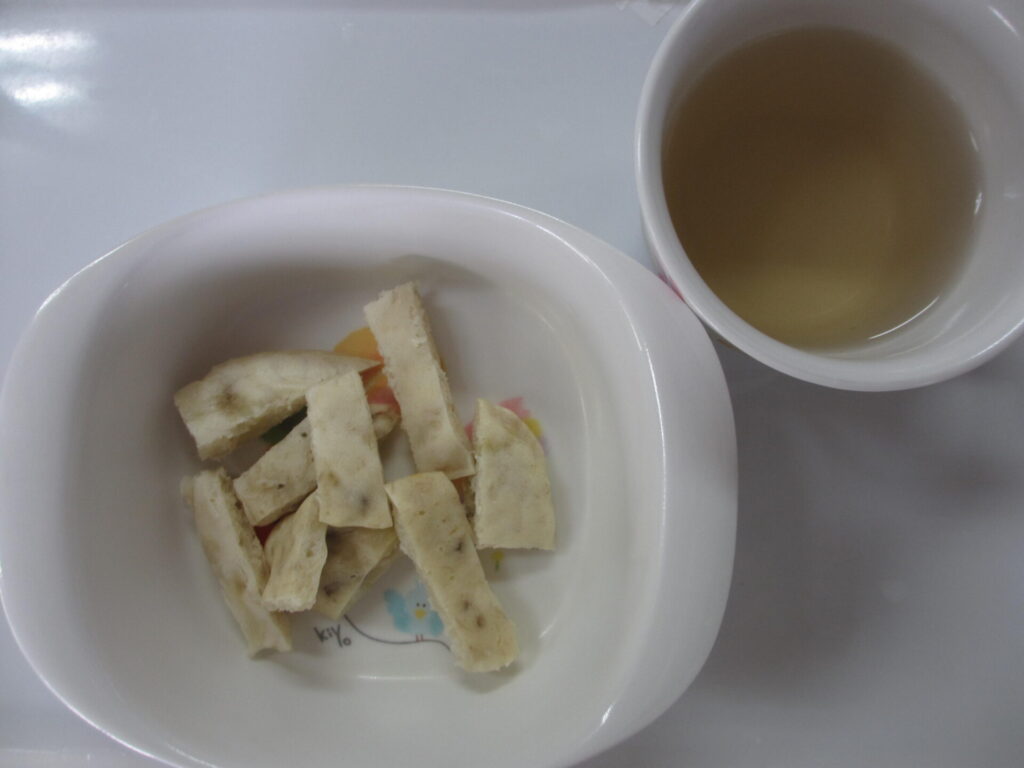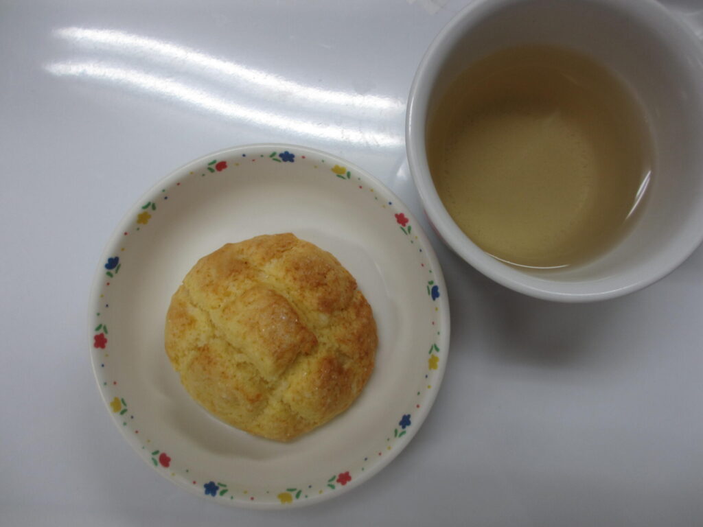 給食室から今日のおやつは、メロンパン風スコーンでした!