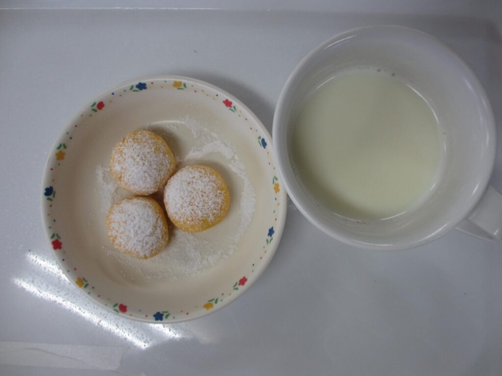 給食室から今日のおやつはかぼちゃのスノーボールクッキーでした✨