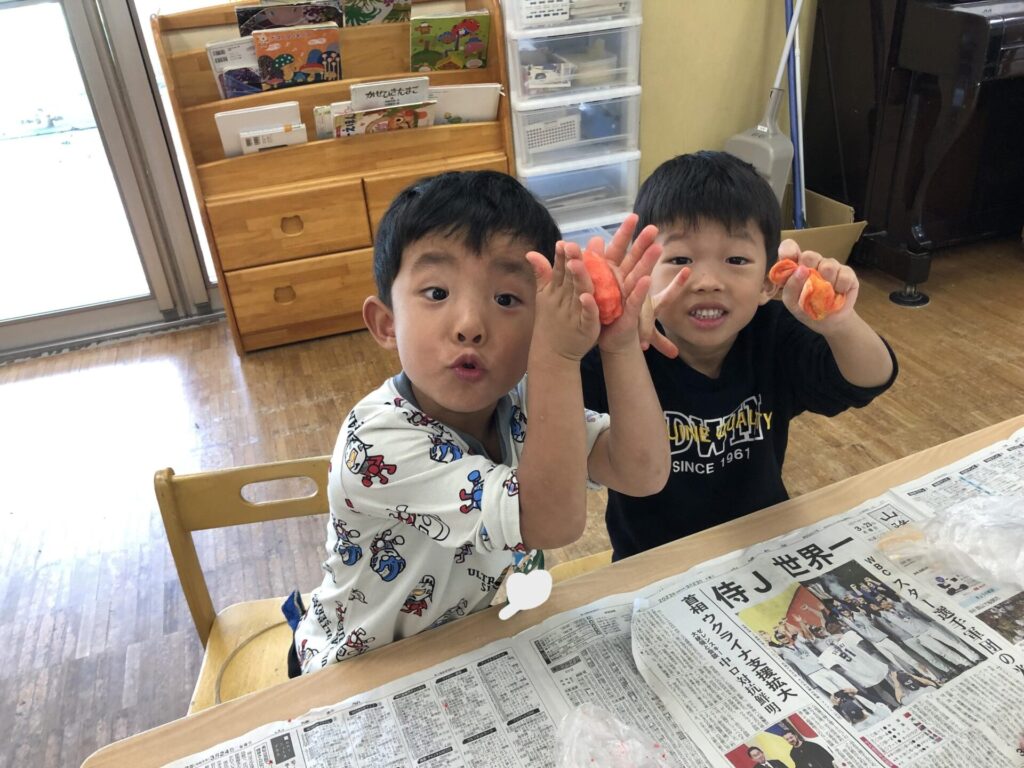 保育室から「今日は何がしたい?」と聞くと、「小麦粉粘土ー!」と言うくらい子どもたちが大好きな小麦粉粘土♡