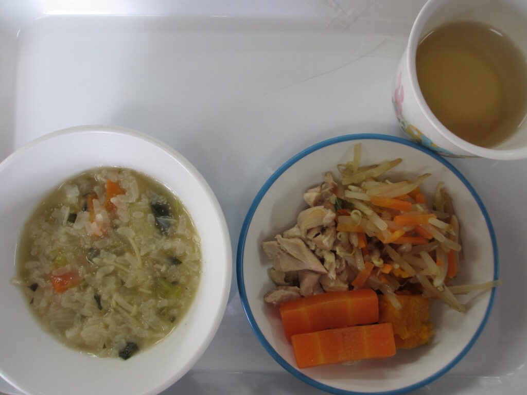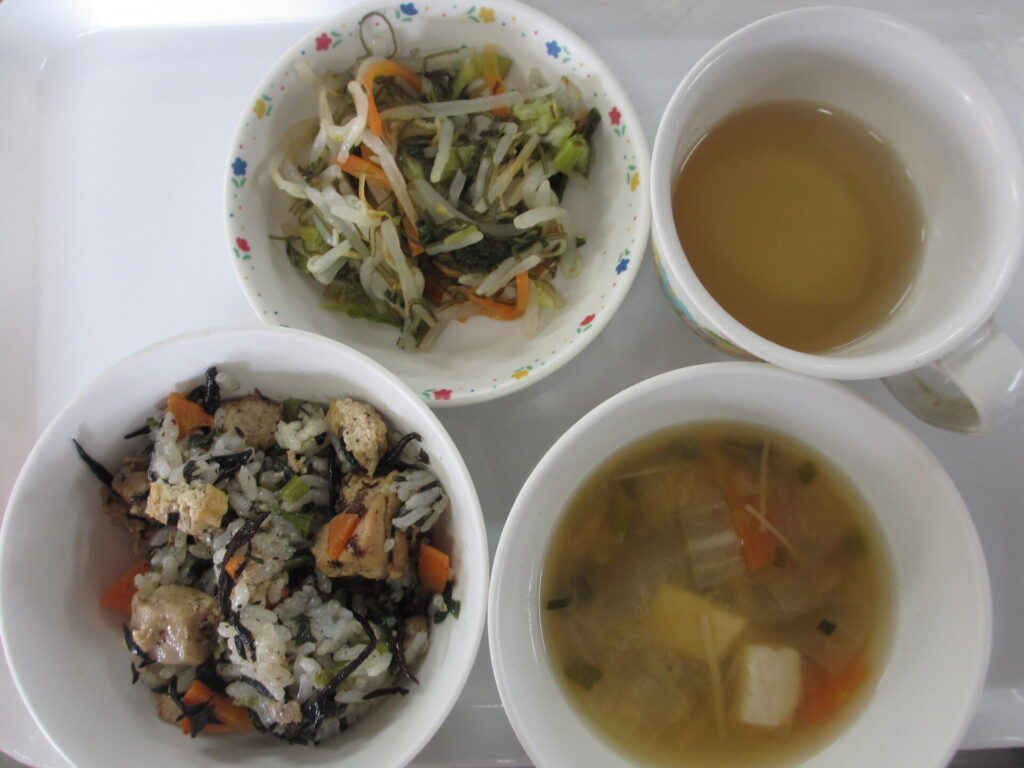 給食室から今日はひじきと小松菜の炊き込みご飯でした✨