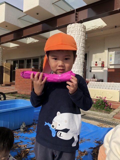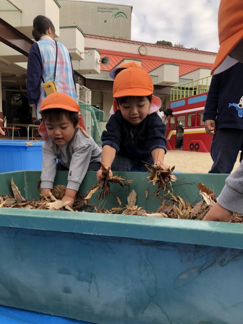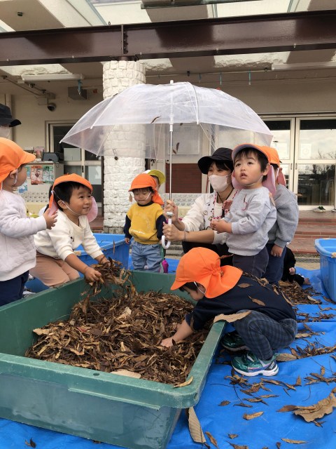 2025年12月10日 一時預かり保育(はな組) おちばあそびをしたよ🍂 ほしぐみ(0歳児)のお友だちと一緒に落ち葉遊びをしましたよ♬ おちばをたくさんタライに入れて、中からお芋を掘ったり~… 落ち葉を両手いっぱいに握って投げて雨を降らせたり! みんなで取りに行った葉っぱでダイナミックに遊べました♡ 焼き芋ごっこにも発展して、しっかり秋を楽しめましたよ🍂🍠 未分類 お知らせ
