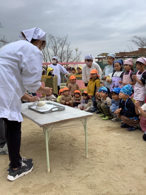 鏡餅作りも幼児組さんに混ざって見せてもらい、大喜びでしたよ~☆