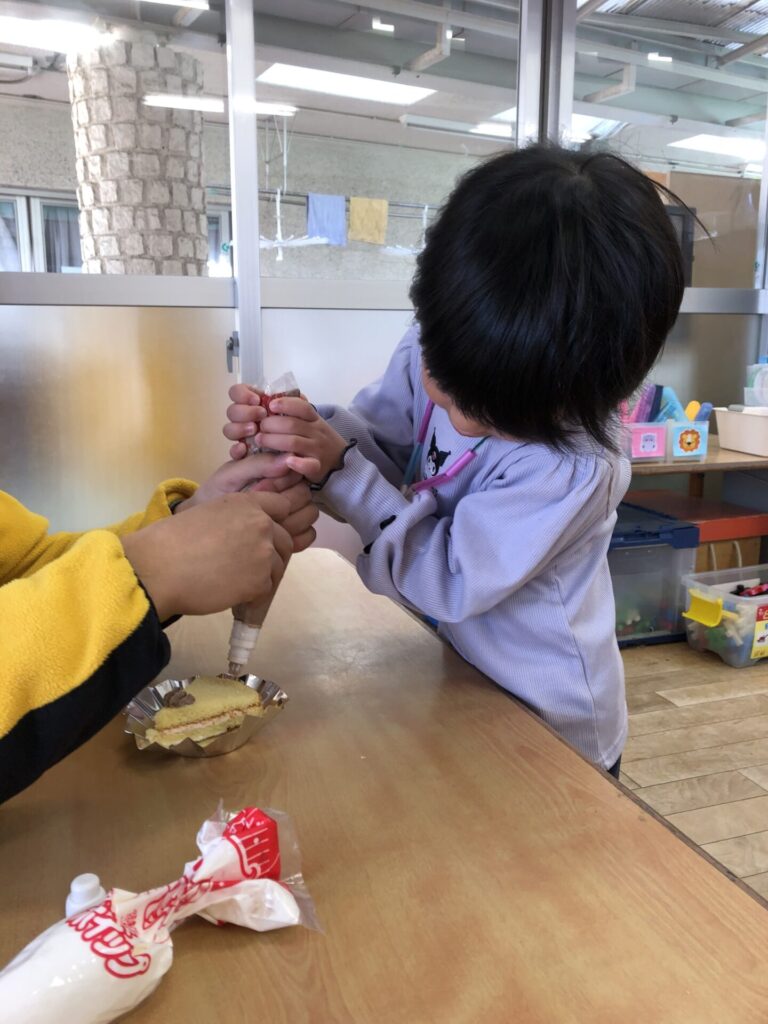 クリーム絞りに挑戦!上手にできるかな?