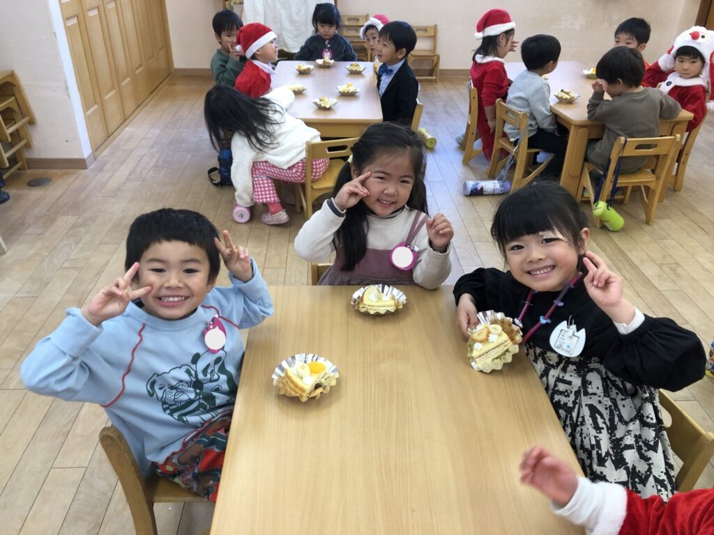 サンタさんに会ったり、皆でケーキ作りをしたりと、特別な1日を笑顔いっぱいで過ごしましたよ😊
